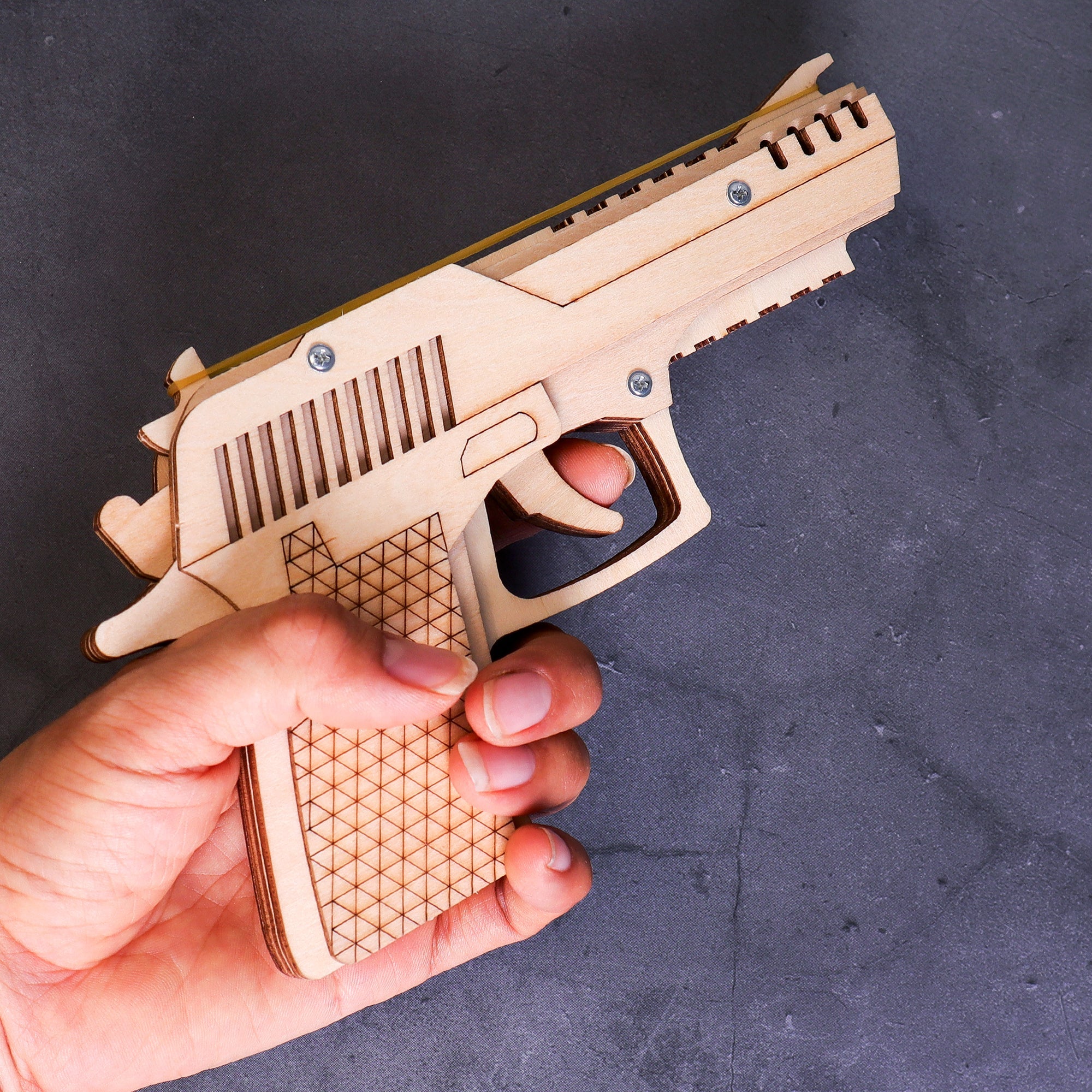• DIY Assembly Kit: Build your very own wooden rubber band launcher.