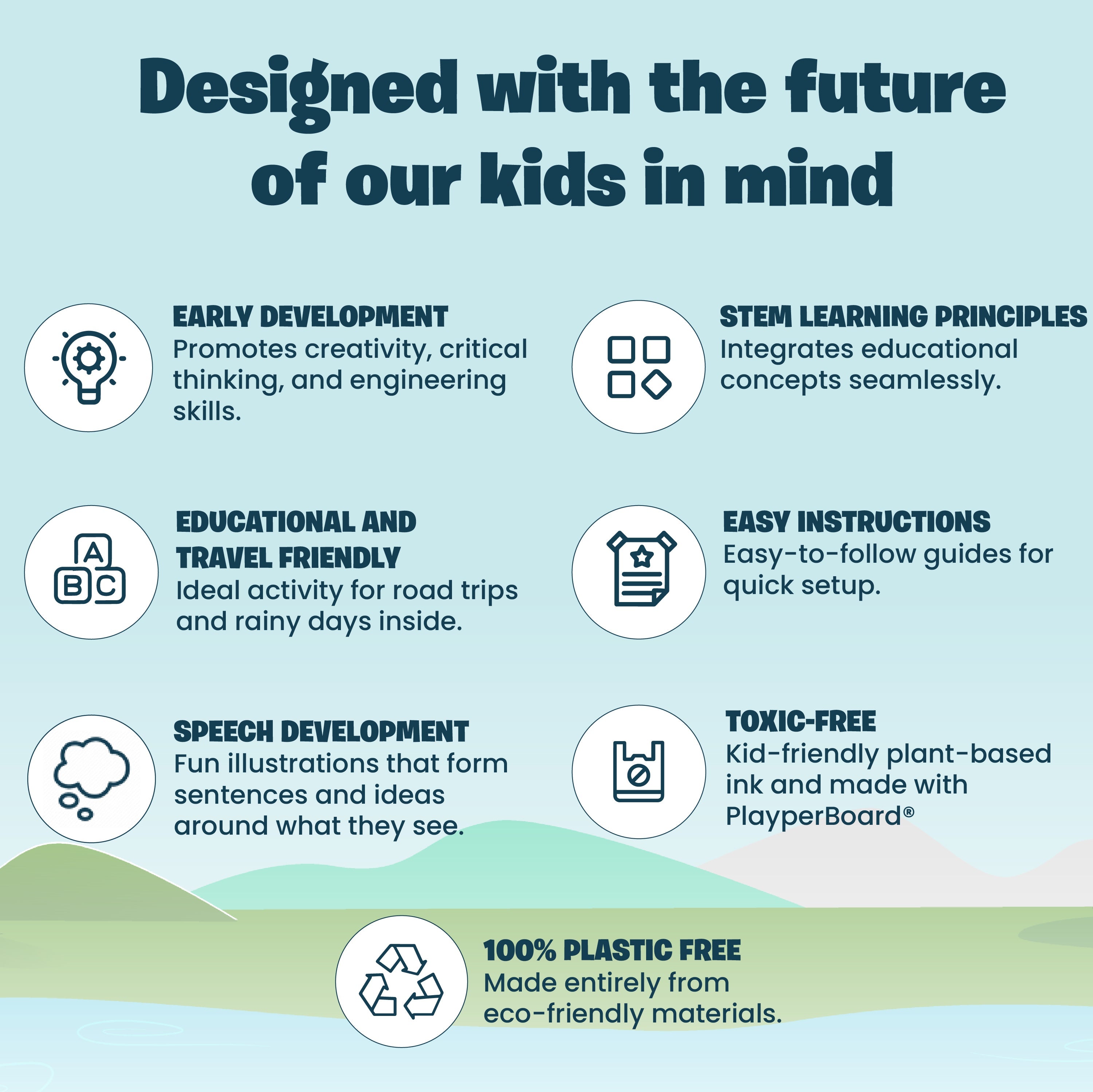 Combines education, creativity, and hands-on play in a durable, sustainable format that sparks imagination and encourages collaborative storytelling.